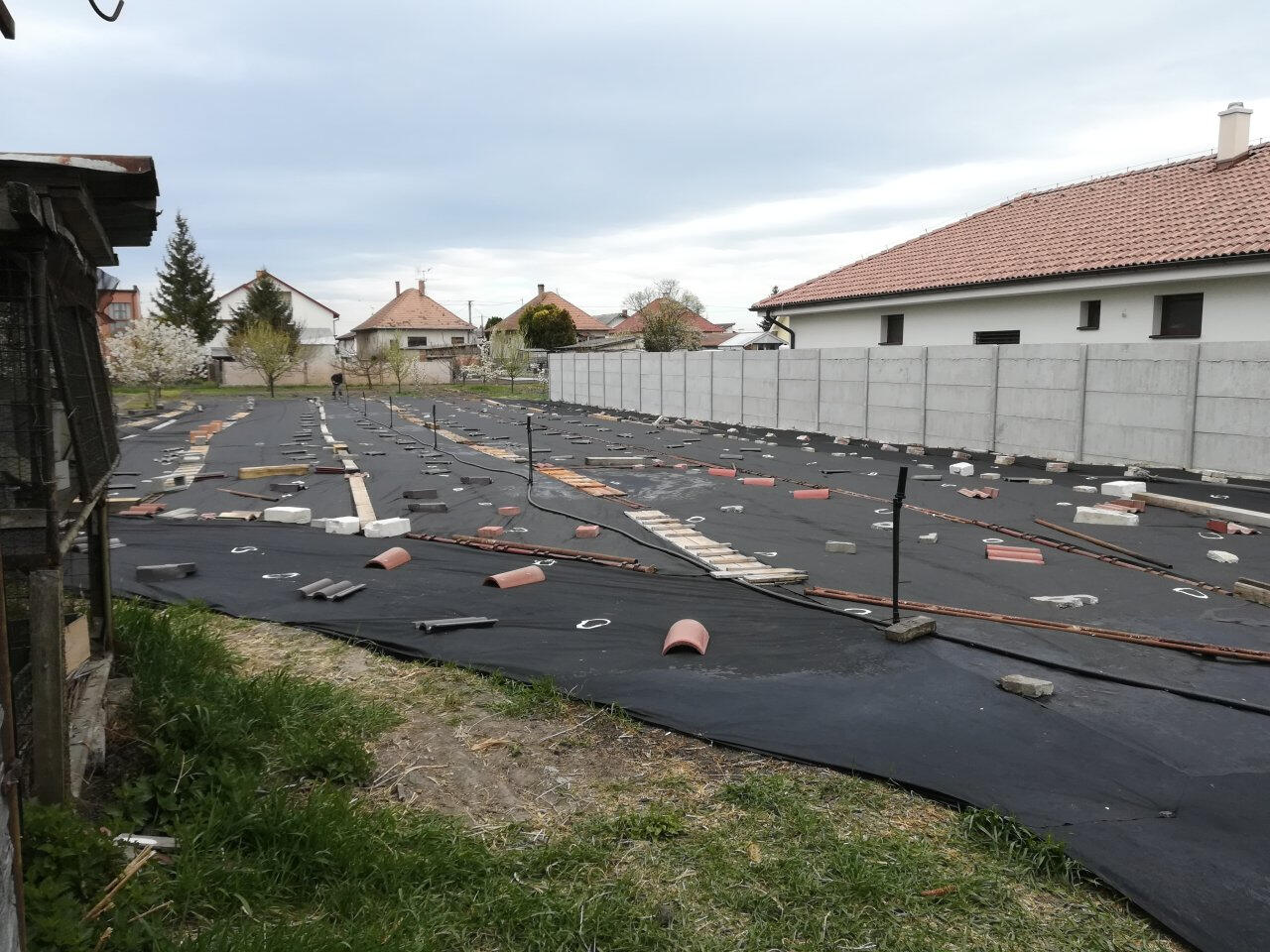 A gyomok ellen az egész termesztési területet geotextíliával fedtem be.