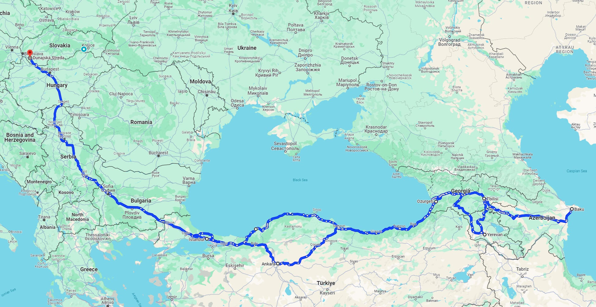 Bejártuk a következő országokat: indulás Szlovákiából, majd Magyarország, Szerbia, Bulgária, Törökország, Grúzia, Azerbajdzsán, Örményoroszág. Grúziát, Azerbajdzsánt, Örményországot hárman jártuk be.