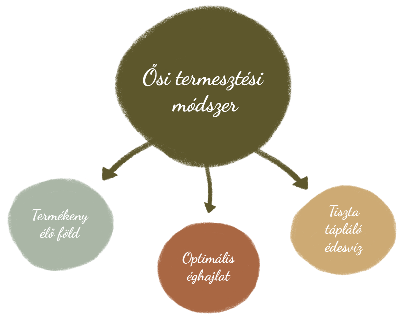 Ősi termesztési módszer – termékeny élő föld, optimális éghajlat, tiszta, tápláló édesvíz képviseli.
