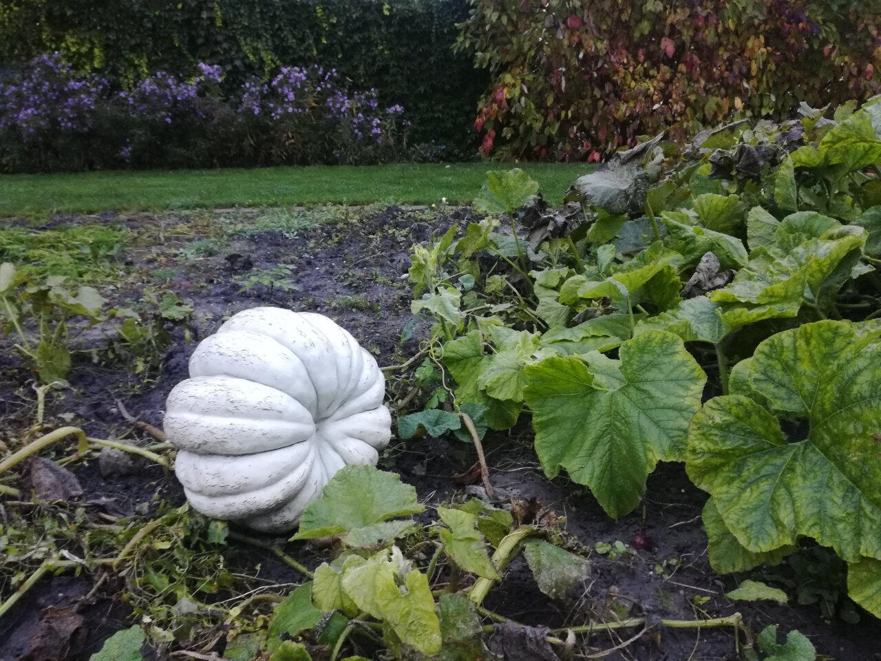 2023. október 26-án így nézett ki az IBITUBA birtokon a patonyszéli sütőtök. Azt hiszem, önmagáért beszél. Meseszép! Gigantikus. Becsléseim szerint lesz akár 30-35 kg-os sütőtök is. Idén a zord májusi időjárásnak köszönhetően a kiültetett 220-ból csak 150 palánta maradt épségben, s nevelkedett felnőtté. De a patonyszéli sütőtök igazi Spartacusként mozgósította ősi esszenciális erejét (e sakaryai fajta nincs túlnemesítve), és rácáfolt az extrém időjárásra (rövid idő alatt nagy mennyiségű csapadék zúdult le). A látvány lenyűgöző! Patonyszéli sütőtök.